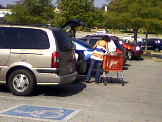 Last time, to begin with, I met this festively dressed woman in the parking lot. I resisted the urge to take a bat and crack her open to see if candy and toys poured out.