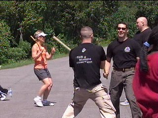 I thought, "Cool." Beating up people with sticks seems like something that would be both beneficial to know, and exciting to do on the weekends. If I have to be concerned with self-defense, I really think that having a stick would be a tremendous asset. Unless the other guy has a bigger stick, I guess. There's some kind of metaphor for war in there, but I'm not going to go to the trouble to lay it out.