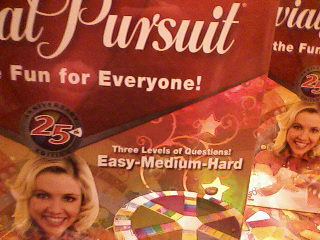 Trivial Pursuit now comes in "Easy, Medium, or Hard" questions. I guess that was the problem, sales were down because they just weren't hitting that 24-49 dumb guy demographic. Nothing like being able to play a hotly-contested game of Trivial Pursuit against a total simpleton. You're naming the capitol of Zimbabwe, and he's keeping up by correctly identifying "eggs" as where chickens come from. Sounds like a blast.